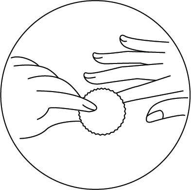 Die durchsichtige Schutzfolie abziehen, dann die Nagelfolie am silbernen Halter vom Trägerpapier abziehen. Vom Nagelbett ausgehend mittig und glatt auf den Nagel kleben. Die Folie dabei langsam bis zum Nagelrand und der Nagelspitze festdrücken.