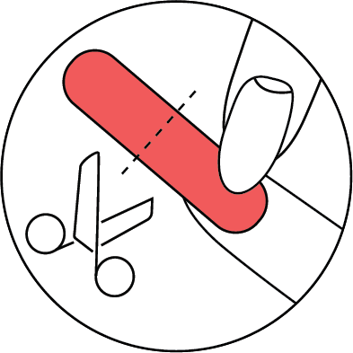 Den über die Nagelspitze stehenden Part der Folie am Nagelrand entlang nach unten falten und mit einer Nagelfeile abfeilen. Die Nagelfeile hierbei gerade halten und nur von oben nach unten feilen, damit sich die Folie nicht wieder ablöst. Wir empfehlen unsere Avoa Glasfeile, da sie die Folie schonend und schnell entfernt.